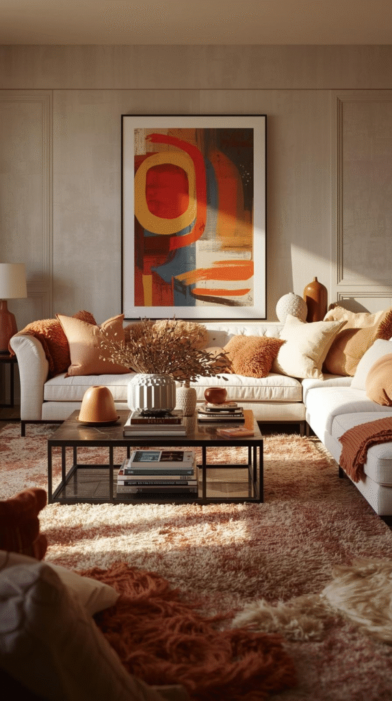 | Statement Rug | $200 – $500 | Anchors the room in earthy, saturated tones. |