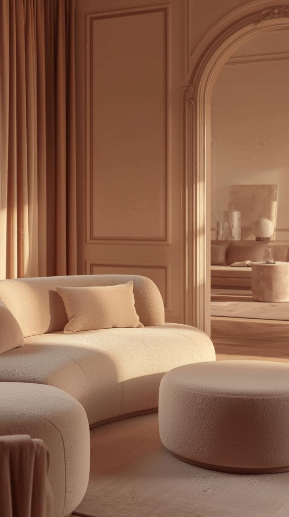 If 2024 was the year of the sharp, “mid-century modern” angle, 2026 is the year of the curve. Soft edges make a room feel safer and more fluid. This is a hallmark of the organic modern living room.
