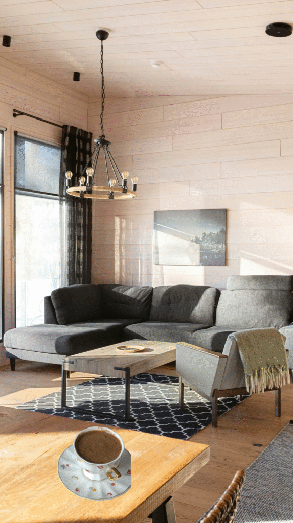 Layering the Glow: For the perfect modern living room inspiration, remember the “Three-Layer Rule”: